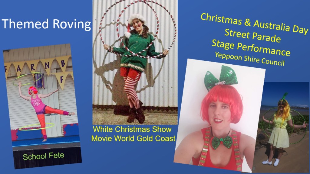 TEACHING EXPERIENCE: •Livingstone Shire Council: Hula Hoop Workshop (Yeppoon) •Moreton Bay Regional Council: Youth Circus Workshops •Sunshine Coast Regional Council: Youth Circus Workshops •Gerrards Performing Arts Centre (Brisbane): Termed Hula Hoop Courses •Claire’s Circus School (Brisbane): Weekly Classes at Local Schools •Hoopy Happenings (Sydney): Hula Hoop orkshops/Performances