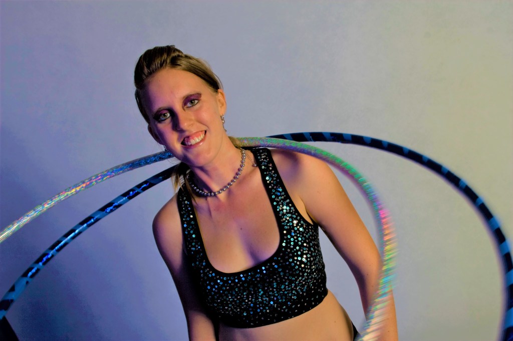 I bring to the role energy and enthusiasm, plus ten years of experience on stage and roving in Queensland and Interstate. I am well accustomed to interacting with crowds of all ages, and my hula hooping is easily adaptable to the Christmas theme, a range of performance environments and costuming options.